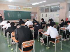 各教室に入ると、多くの生徒が教科書やワークを開き、一生懸命に学習に取り組む姿が見られました。試験開始のチャイムが鳴ると、教室内は一気に緊張感に包まれ、生徒たちは真剣な表情で問題用紙に目を通し、これまでの学習の成果を発揮しようと懸命に取り組んでいました。